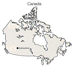 Reisens mål var Edmonton, den regionale hovedstaden i staten Alberta, en by nordvest på den kanadiske prærien på breddegrad med Berlin. Fra flyet nordover fra Calgary så vi ned på endeløse flate marker, enten grågule av fjorårets tørre gress eller brune og nypløyde, spredte gårder, bilveier som rutenett over landskapet og innsjøer der vinterisen holdt på å gi tapt for vårvarmen. Edmonton viste seg å ligge dels på flate prærien, dels i en frodig elvedal. Vi kom dit i slutten av april 1999 til den første vår- eller sommerdagen med 20 ˚C og sol, og vi så fra dag til dag hvordan plenene og markene ble grønne og bladene på trær og busker sprang ut. Vinteren hadde imidlertid ikke helt sluppet, og da vi reiste fire dager senere, blåste og sluddet det vannrett, og på markene var det et tynt snødekke.