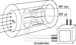 Hovedbestanddelene i en magnettomograf er en stor og meget kraftig magnet for å gjøre pasientens vev magnetisk, en radiobølgesender for å påvirke vevsmagnetismen, en mottakerspole for å registrere signalene fra vevet, magnetiske feltgradienter for å lokalisere disse signalene og et datasystem for å lagre signalene og omforme dem til bilder (fig 1). De fleste magneter som benyttes til MR er så store at hele pasienten kan plasseres inne i dem. Styrken til magnetfeltet (B0-feltet) måles i tesla (T) (1 tesla = 104 gauss). De fleste magnettomografer har feltstyrke i området 0,1 – 1,5 T.
