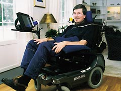 Ikke minst gir systemet mulighet til å kommunisere ved hjelp av innlest tale. I fjor sommer, mens stemmen ennå var normal, spilte han inn en lang rekke talebeskjeder, hilsninger og sanger som ble lagret i dataprogrammet. Når hans egen stemme snart forsvinner, vil han kunne aktivere den innspilte stemmen via symboler på dataskjermen. Det er også lagt inn muligheter for syntetisk tale, slik at han kan konstruere setninger.