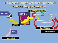 Vi vil i denne artikkelen gi en oversikt over nyere medikamentelle behandlingsprinsipper for overvekt og fedme. For at leseren skal kunne forstå bakgrunnen for disse prinsippene, omtaler vi patofysiologi ved overvekt og fedme først.