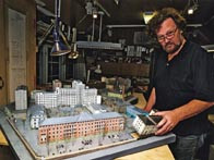 I John Hestermanns modellverksted på Hvalstad i Asker har en stor og komplisert modell tatt form – det er Rikshospitalet i Pilestredet i Oslo som er blitt gjenskapt med største nøyaktighet. På forsidebildet ser vi Hestermanns modell slik den så ut noen uker før ferdigstillelsen i desember 2000.