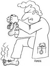 Da smerten var som verst, ble det sendt signal langs legebyråkratiets ryggmarg (dog ikke i 100 m/s!) til sentrale kontrollfunksjoner i legestammen. Ved nærmere undersøkelse og diagnostikk har man senere kunnet forklare veksten med ukontrollert stimulering fra gebyrstipendutskillende politikerkjerner uten noe form for negativ tilbakekobling. Lokaliseringen er funnet å være i stortingshypofysen hvor et legemangeladenom over lengre tid har fått vokse seg stort med påfølgende patologiske studentresultater. Histologiske prøver har ikke kunnet gi et entydig benignt svar; muligens ligger en potensielt malign grensevariant til grunn. Man har imidlertid gått inn for en hypofysektomi i håp om å stoppe gebyrstipendstimuleringen fra politikerkjernene i legemangeladenomet. Det er blitt satt opp som elektivt inngrep, med akutt undertone. Imidlertid er skaden allerede skjedd. Skoen trykker, og passer ikke lenger. I denne situasjonen må man ty til adjuvant terapi. I sin desperasjon for ikke å klemmes inne i skoen er noen fortsatt villige til å la tær falle, så vel som å kutte av seg ørene for å få hodeplagget til å sitte. Det likner lite på nåtidens ”evidence based medicine”, snarere blir det som å tisse i buksen for å holde varmen. Når det trykker som verst, er det kanskje på tide med et skobytte. I vekst er det viktig å tilpasse skostørrelse og form. Nye sko kan gi bedre kontakt med underlaget, og føre til en mer behagelig vandring på legeautorisasjonens kronglete vei. Som med de fleste nye sko kan man jo risikere å gå en periode med gnagsår til foten tilpasser seg formen. Senere kan man jo, når forholdene igjen tillater det, ta ned det gamle fott&