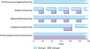 De første 1 – 2 år etter menopausen anbefales gestagentillegg i minst ti dager hver måned