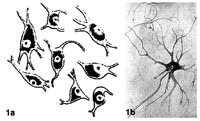 Toneangivende tilhengere av retikularteorien var J. von Gerlach (1820 – 96) og C. Golgi (1843 – 1926), og slike ”retikulære” forestillinger var aktuelle helt frem til 1890-årene (fig 2) (1). Kjente tilhengere av nevrondoktrinen var A. Forel (1848 – 1931) i Basel og W. His (1863 – 1934) i Leipzig, og disse synspunktene fikk stadig større tyngde etter Ramon y Cajals (1852 – 1934) overveldene bidrag fra slutten av 1880-årene.