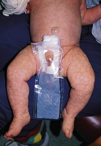 Urinprøve hører med til utredning ved feber uten klinisk påvisbar årsak hos spedbarn og småbarn. Midtstråleurin er det beste når det gjelder både gutter og piker. Hos piker oppnås dette ved at hun skrever og at labia majorae trekkes fra hverandre. Hvis det er nødvendig med poseprøve, må genitalia vaskes med såpe og skylles godt med vann. Hos piker vaskes det forfra og bakover, også mellom labia majorae og minorae. Det er en erfaringssak at mange barn, spesielt småpiker, får diagnosen urinveisinfeksjon på grunnlag av forurensning av prøven. En prøve tatt hjemme bør derfor kontrolleres ved at ny prøve tas av helsepersonell dersom det er tvil om diagnosen. Ved tvil er kateterprøve nyttig, og dette kan gjøres uten særlig ubehag hos piker. Suprapubisk blærepunksjon ansees for trygt, men de færreste liker å gjøre dette i allmennpraksis. En lett leukocyturi kan sees uspesifikt ved høy feber. Dette kan gi svakt utslag på leukocytter på strimmelprøve (1 – 2+) og opptil ca. 6 – 8 leukocytter per synsfelt med 40 gangers forstørrelse på objektivet i sentrifugert urin. Hos barn bør urinen alltid dyrkes for å dokumentere om det er en infeksjon eller sannsynlig forurensning.