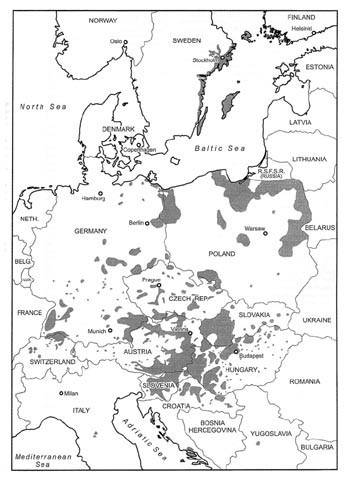 Det finnes to subtyper av TBE-virus – en østlig variant, som opptrer i de asiatiske deler av Russland, og en vestlig variant, som opptrer i Sentral- og Øst-Europa (2). I absolutte tall har Russland flest sykdomstilfeller, fulgt av Latvia, Tsjekkia, Slovenia og Ungarn. Østerrike, der det tidligere var mange tilfeller, har nå lavere insidens som følge av vaksinasjon (3). Høy prevalens av sykdommen er det også i Finland, Slovakia, Tyskland, Sveits og de fleste land på Balkan. En oversikt over endemisk forekomst av TBE-virus er vist i figur 1 (4).