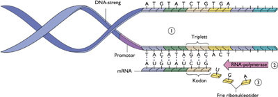 Promotor er også et sentralt begrep i genetikk. Transkripsjonen av gener i eukaryote celler katalyseres av enzymer betegnet RNA-polymeraser. Transkripsjonen starter med at RNA-polymerase binder seg til en DNA-sekvens, som kalles en promotor og er lokalisert i nærheten av den region som skal transkriberes. Basesekvensen i promotoren for en sentral RNA-polymerase er TATAAA, og det har gitt opphav til betegnelsen TATA-boks (5). Promotorer er aktuelle ikke minst i forbindelse med genterapi (6, 7).
