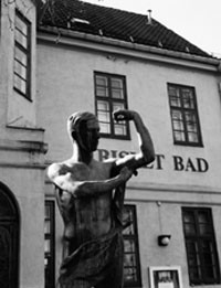 Utenfor Bislet Bad i Oslo står det en skulptur som kan inspirere til refleksjoner over offentlige bad og deres betydning opp gjennom tiden. Den heter Efter badet og er utført av Anders Svor (1864 – 1929). Man kan formelig se hvordan mannen med håndkleet føler seg ren, og hvordan han med tilfredshet iakttar muskelspillet i overarmen. Statuen var en gave fra Selskabet for Oslo Byes Vel da Bislet Bad stod ferdig i 1920.