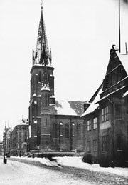 Sannsynligvis svært få. Det er Johanneskirken i Oslo som ble revet i 1928 (1). Det er nok flere som husker bensinstasjonen som kom isteden, mens det er lettere å føle seg hjemme på det hundre år nyere fotografiet som er tatt på samme sted og gjengitt her i teksten – av Christiania Torv med Legenes hus fra 1996.