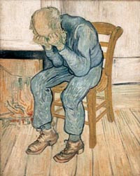 Van Gogh var en kunstner som kjente sinnets dypeste daler. Modellen på bildet ser ut til å være i en av disse dalene. Kanskje er han deprimert, slik at det er psykisk sykdom bildet viser. Kanskje er han i stedet kraftig lei seg uten at det er noe sykt ved dette. Mestrer ikke situasjonen. Personlige problemer, økonomiske vansker, egen eller nærståendes somatiske sykdom og mye annet kan gi en nedtrykthet som føles like tung som en depresjon, selv om den ikke er sykelig, men simpelthen er en del av livet.