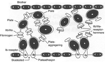 – Glykoprotein IIb/IIIa-hemmere hemmer plateaggregering ved å interferere med glykoprotein IIb/IIIa-reseptoren (fibrinogenreseptoren)