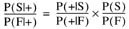 Ved å bytte om S og F i Bayes’ formel finner vi P(F|+), som også er lik 1 – P(S|+). Kombinerer vi Bayes’ formel for P(S|+) og P(F|+), finner vi Bayes’ formel på odds form