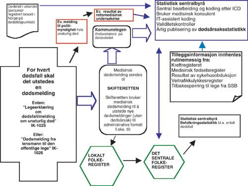 Verdens helseorganisasjons regler og retningslinjer for rapportering av dødsårsak og hvordan denne informasjonen skal bearbeides til årsaksspesifikk mortalitetsstatistikk har betydd mye for utviklingen av statistikkens kvalitet og sammenliknbarhet. I Norge har gjensidig utveksling av informasjon mellom Dødsårsaksregisteret og andre registre bidratt til gjensidig kvalitetsforbedring (fig 1). Tilbakemelding fra forskere, analytisk virksomhet direkte knyttet til registeret og deltakelse i samarbeidsprosjekter er viktig for å opprettholde og utvikle fagmiljøet ved Dødsårsaksregisteret. Erfaringer tyder på at ett fagmiljø bør ha samlet ansvar for drift, datasikkerhet, kvalitetssikring, brukerkontakt og internasjonalt samarbeid og selv bruke data til analyse og forskning.