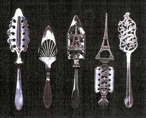Til dette ritualet er det gjennom tidene utviklet spesialutstyr for å blande eller konsumere drikken, som for eksempel spesialkaraffel med mål som viser hvor mye man har drukket, skjeer og vanndispensere med flere kraner, slik at alle rundt bordet har tilgang til vann (fig 1). Man kan ikke se bort fra at en slik rituell blandingsprosedyre kan ha bidratt til absintens popularitet.