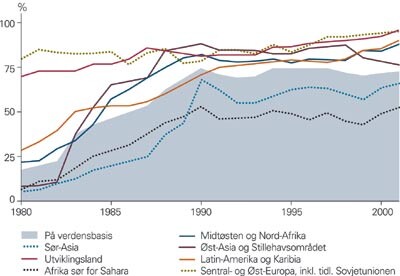 Det er beregnet at vaksinering redder tre millioner menneskeliv hvert år, men ytterligere tre millioner kunne vært reddet. Enkelte fattige land har lyktes i å øke andelen vaksinerte barn betydelig, mens dekningsgraden i andre land nå er lavere enn på mange år. Dette gjelder bl.a. i Afrika sør for Sahara, hvor bare om lag 50 % av barna ble vaksinert i sitt første leveår i 2000 (fig 1). Dette står i skarp kontrast til vestlige land, som både har langt høyere dekningsgrad og tilgang til langt flere vaksinetyper. I Somalia var andelen barn som ble vaksinert mot difteri, tetanus og kikhoste (DTP) så lav som 18 %. I Den sentralafrikanske republikk sank andelen vaksinerte barn fra 82 % i 1990 til 29 % i 2000, i Kongo fra 79 % til 33 % (1).