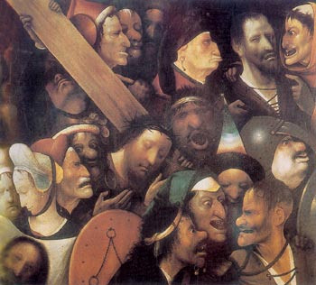 Dette fotografiet har likhetstrekk med maleriet Kristus bærer korset av Hieronymus Bosch (1450 – 1516). Ondskap og skadefryd når her et visuelt klimaks. I begge bilder trekkes vi ubehagelig tett innpå de menneskene som illustreres. Hos Bosch er ansiktene forvrengte og demoniske med en intens, lysende stygghet. Det kan se ut som de bærer masker. Men kanskje er det slik vi ser ut når den masken vi bærer daglig, med sivilisasjonens ferniss, blir trukket til side. Slik som det skjedde i gullgravernes leir fem århundrer senere. I bildets sentrum har Bosch satt Kristus med lukkede øyne, langt borte fra denne verden av pinsler og hån. Forfølgerne kan ikke lenger nå Guds sønn. Midt i lidelsene er han den seirende.