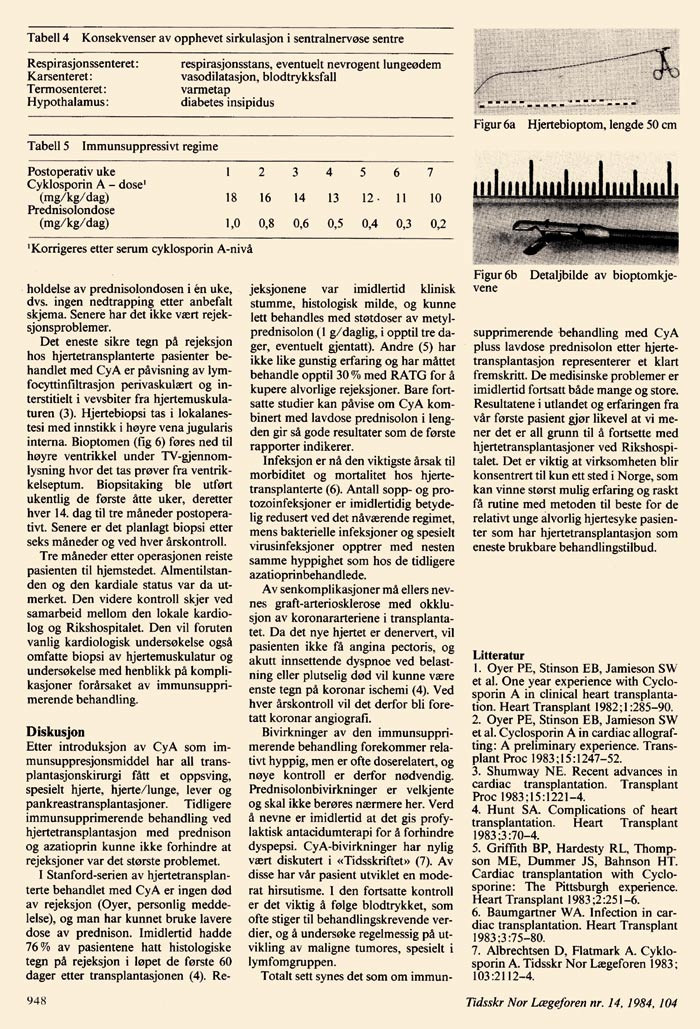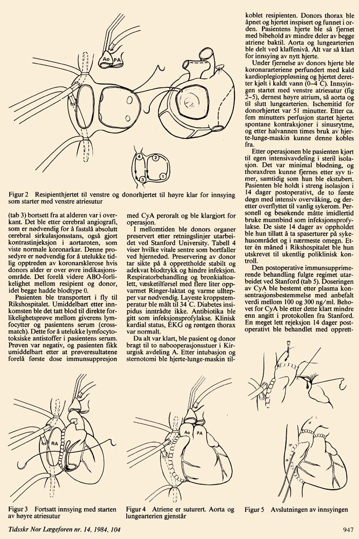 Tidligere i Tidsskriftet Første hjertetransplantasjon i Norge () sporsmal_grey_rgb Artikkel Valget falt på en 22 år gammel Trondheims-kvinne da det kirurgiske inngrepet fant sted i november 1983. Året etter beskrev de involverte legene denne medisinske milepælen for Tidsskriftets lesere: Kommentarer ( 0 ) Dette kommentarfeltet modereres, men kommentarer blir ikke redaksjonelt behandlet ut over å sikre at de følger retningslinjer for vårt kommentarfelt. Denne artikkelen ble publisert for mer enn 12 måneder siden, og vi har derfor stengt for nye kommentarer. Publisert: 23. oktober 2003 Utgave 20, 23. oktober 2003 Tidsskr Nor Lægeforen 23. oktober 2003 123 : 2984-6 Publisert: 23. oktober 2003 Utgave 20, 23. oktober 2003 Tidsskr Nor Lægeforen 2003 123 : 2984-6 PDF Får du ikke vist PDF-filen eller vil lagre filen, kan du høyreklikke på PDF-ikonet. Velg «Lagre mål/fil som..» og hent så opp PDF-filen i for eksempel Acrobat Reader. Skriv ut Anbefalte artikler
