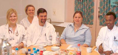 Christina Bang, Elisabeth Sætnan, Kai I. Müller, Anna Maria Hernandez og Liyew A. Desta var blant de turnuslegene rådet møtte ved sitt besøk til Elverum sykehus. Foto Olav Thorsen