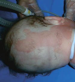 Ved sårinfeksjon skal man vaske såret grundig med 0,9 % natriumklorid før dyrkingsprøve tas. Deretter kan man starte lokalbehandling med sølvsulfadiazinkrem, salvekompress/silikonnett og tørr kompress med daglige sårskift, eller sølvbandasje med sårstellshyppighet i henhold til bruksanvisning fra produsenten. Dersom pasienten skulle få allmennsymptomer med feber, må vedkommende få bredspektret antibiotikum og vurderes innlagt i sykehus for videre oppfølging. Det er ikke indikasjon for profylaktisk bruk av lokale eller systemiske antimikrobielle midler, da disse ikke har vist å redusere insidensen av overflatisk infeksjon, cellulitt eller sepsis (1, 2).