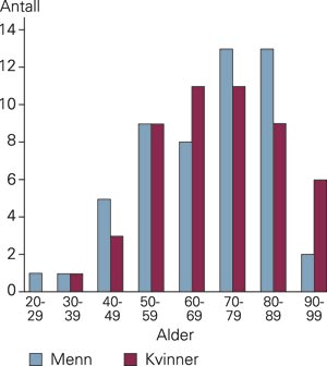 Pasientsammensetningen hos oss likner det vi finner i andre materialer (4, 5, 12). Det har vært en tiltakende økning i antall eldre, og kvinneandelen har steget gjennom de siste 50 årene.