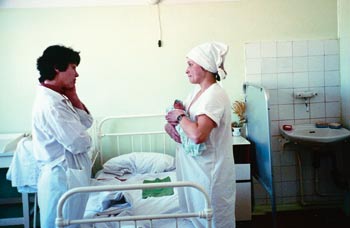 Prosjektet Foreldre og fødsel i Barentsregionen (1) var en del av samarbeidsprogrammet for helse i Barentsregionen 1999 – 2003. Hovedmålsettingen var, i samarbeid med regionale helsemyndigheter i Arkhangelsk og Murmansk samt Nenets autonome distrikt, å bidra til innføring av en mer familieorientert fødselsomsorg, slik Verdens helseorganisasjon (WHO) har anbefalt (2) . To spørreundersøkelser blant russiske kvinner som nettopp hadde født, ble gjennomført i 2000 og 2002, og den første av disse undersøkelsene omfattet også nordnorske kvinner. Hvordan drives så svangerskapsomsorg og fødselshjelp i Nordvest-Russland?
