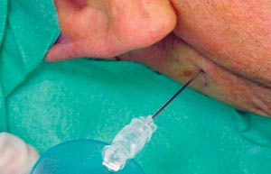 Det ble derfor funnet indikasjon for perkutan kordotomi. Dette ble gjort først etter konakionbehandling for å korrigere en forhøyet INR-verdi. Kordotomien gav umiddelbar smertelindring. Dosen med smertestillende medikamenter kunne raskt reduseres, og etter noen få dager var opioider seponert. Han fikk forbigående smerte i høyre underekstremitet samt forbigående inkontinens for avføring. Til tross for god smertelindring ble allmenntilstanden gradvis dårligere, og han sovnet stille inn 14 dager etter behandlingen. Disse dagene var han uten smerte. Både pasienten selv, de pårørende og pleiepersonellet gav uttrykk for at dette var av stor betydning.