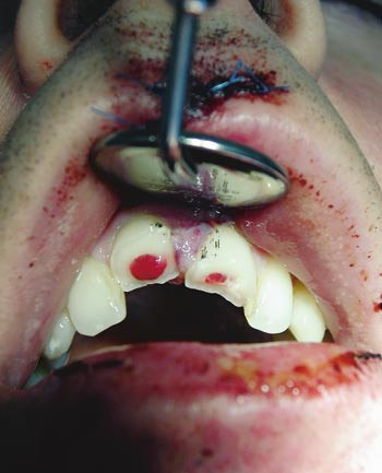 Ved en tredel av tannskadene forekommer bløtdelsskader som affiserer gingiva og lepperegion. Gjennomgående kuttskader i leppe lukkes i tre lag med resorberbar sutur i mucosa og muskulatur, og hudsuturer. Overgang hud-lepperødt markeres før injeksjon av anestesi, da denne må adapteres eksakt. Overflatiske hudavskrap, ekskoriasjoner, må ev. skrubbes inntil alle synlige forurensende partikler er fjernet. Slimhinnelacerasjoner intraoralt skal adapteres med resorberbar sutur, spesielt for å dekke blottlagt bein.