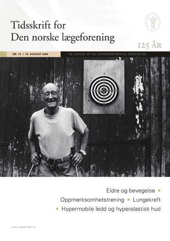 Forsidebildet Ut på tur! Aina Staveland Johnsen Om forfatteren Se alle artikler Aina Staveland Johnsen Email: ainajohnsen@hotmail.com Hølen () sporsmal_grey_rgb Artikkel Foto Aina Staveland Johnsen Gunnar Kondal Brangerud ble motivert til å stumpe røyken da han møtte sin tilkommende hustru i 1946. I en alder av 82 står han opp tidlig hver morgen og gjør gymnastikk. Etter en bedre frokost setter han ut på den daglige to timer lange trimturen. Relaterte artikler Hvordan ivareta sykehjemsbeboernes behov for bevegelse? Kommentarer ( 0 ) Dette kommentarfeltet modereres, men kommentarer blir ikke redaksjonelt behandlet ut over å sikre at de følger retningslinjer for vårt kommentarfelt. Denne artikkelen ble publisert for mer enn 12 måneder siden, og vi har derfor stengt for nye kommentarer. Publisert: 10. august 2006 Utgave 15, 10. august 2006 Tidsskr Nor Lægeforen 10. august 2006 126 : 1877 Publisert: 10. august 2006 Utgave 15, 10. august 2006 Tidsskr Nor Lægeforen 2006 126 : 1877 PDF Får du ikke vist PDF-filen eller vil lagre filen, kan du høyreklikke på PDF-ikonet. Velg «Lagre mål/fil som..» og hent så opp PDF-filen i for eksempel Acrobat Reader. Skriv ut Anbefalte artikler