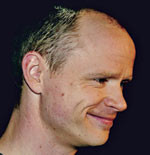 – Mener du at Rogaine vil gjøre at hodet holder på håret på samme måten som denne Rogaine-magneten holder på arkene? Tror du virkelig det er så enkelt?