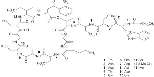 Fenton C, Keating GM, Curran MP. Daptomycin. Drugs 2004; 64: 445 – 55.