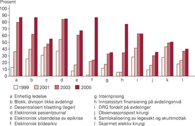 It has been demonstrated that Norwegian hospitals are able to change and adapt. Several standardized organizational and leadership structures recommended by official reviews are increasingly being adopted into practice. Hospitals are being modernized.