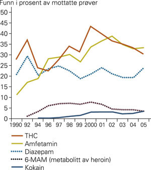 Delta (9)-tetrahydrocannabinol (THC) er det mest potente psykoaktive stoffet i cannabis. Det representerer et av de hyppigst påviste rusgivende stoffer i blodprøver fra bilførere mistenkt for kjøring i påvirket tilstand. En gjennomgang av analysefunn fra perioden 1990 – 2005 viser at frekvensen av funn av THC varierer fra i underkant av 30 % til over 40 % av alle mottatte prøver (fig 1) (2) – (4).