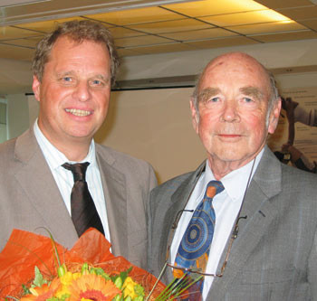 Arvid Libak (t.v.) overrakte hedersprisen til Tore Sanner. Foto Ellen Juul Andersen