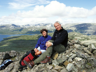 Når lederen for allmennlegene skal koble av, drar han til fjells sammen med sin kone Gro. Hytta i Hemsedal er utgangspunkt for mange fine fjellturer. – Her kan vi sitte stille på en stein og se langsomt ut i evigheten eller søke opp på toppene rundt oss. Det er et deilig pusterom i en ellers travel hverdag, sier han.