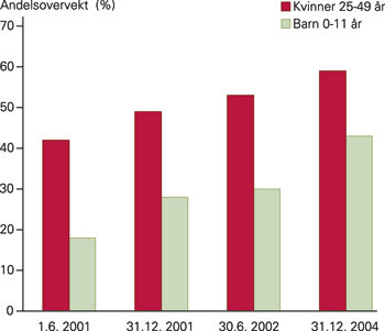 I denne undersøkelsen har vi sett på hvor stor prosentandel barn (0 – 11 år), menn og kvinner (25 – 49 år) og eldre pasienter (65 – 79 år) utgjorde av listene til mannlige og kvinnelige fastleger i perioden fra innføringen av fastlegeordningen i juni 2001 frem til utgangen av 2004.