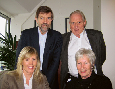 Generalsekretær Terje Vigen (bak t.v.) med hele staben. Fra venstre: Kristin Hekne Thoresen, Ellen Pettersen og Odvar Brænden. Foto Lise B. Johannessen