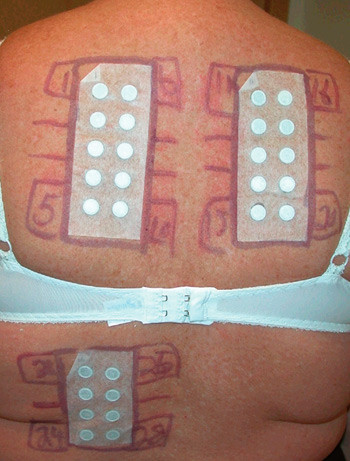 857 patients were tested for contact allergy (epicutantest; patch test) at the Department of Dermatology, Stavanger University Hospital in 2001 and 2002. Finn Chambers were placed on the upper part of the back, removed after 48 hrs and read after an additional 24 hrs. Positive reactions and other variables were recorded and data were collected retrospectively from journals.