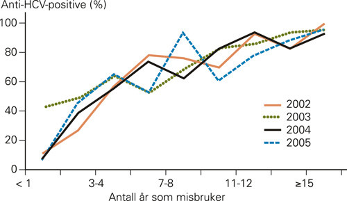 Hepatitt C-virus smitter gjennom perkutan eksponering for blod. De fleste blir smittet via urene sprøyter. De siste fem årene har de sprøytenarkomane i Oslo hatt tilbud om helseundersøkelse. Det viser seg at få blir smittet første år som misbruker, men allerede etter 2 – 3 år er 50 % smittet. Nesten alle er smittet etter 10 – 12 år (fig 1).
