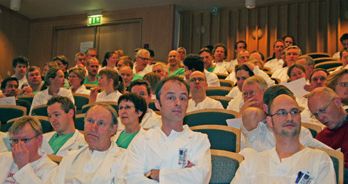 Torunn Janbu, president i Legeforeningen, sa innledningsvis at vi nå står overfor store utfordringer i forhold til nedskjæringene som er varslet pga. budsjettunderskudd på det enkelte sykehus. – Disse nedskjæringene skjer samtidig med at hovedstadsprosessen, som bl.a. skal samle funksjoner og vil medføre store omstillinger, er i full gang. Det er svært uheldig at disse to prosessene ikke er samordnet, sa hun. – Det kan få følger for pasienttilbudet dersom nedtrapping av tilbud på ett sykehus ikke er ledd i en helhetlig plan for hele regionen. Nedskjæringene vil få følger for utdanningsstillingene ved sykehusene. Dersom vi får en reduksjon av disse kan det få nasjonale konsekvenser, sa Torunn Janbu.