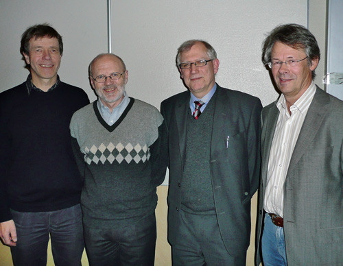 Per Sandvei (t.v) ved gastromedisinsk avdeling, Sykehuset Østfold, Fredrikstad, debatterte avdelingssammenslåing med blant andre Eirik Kittang, gastromedisinsk avdeling, Sykehuset Vestfold, Arild Horn, gastrokirurgisk avdeling, Haukeland Universitetssjukehus og Idar Lygren, gastromedisinsk avdeling, Ullevål universitetssykehus. Foto Bjørn Moum