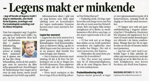 – Legeforeningen er godt fornøyd med at ministeren ikke har fastlåste løsninger på forhånd og at arbeidstakerorganisasjonene skal være med på å finne og utforme løsningene, sier hun