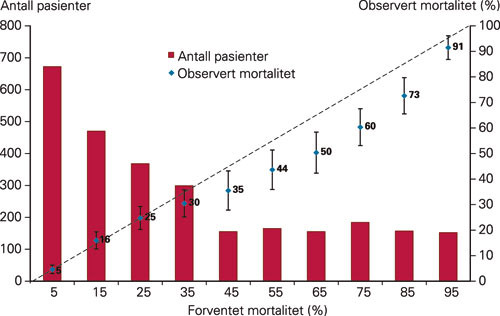 I intensivavsnitt behandles de sykeste eller alvorligst skadede pasientene, ofte er det livstruende organsvikt. Behandlingen er komplisert, den gjennomføres som et samarbeid mellom flere spesialister, krever avansert medisinskteknisk utstyr og er meget personellkrevende. Behandlingsresultatene oppgis som risikojusterte dødelighetsdata for en periode. Forholdet mellom observert og forventet dødelighet – standardisert mortalitetsratio – brukes som en kvalitetsindikator for behandlingsresultatene i pasientpopulasjonen. For å beregne risikoen for død under sykehusoppholdet anvendes Simplified Acute Physiology Score II (SAPS II) (1, 2).