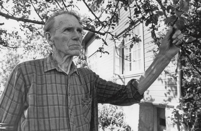 Man nærmer seg gjerne sine helter med en viss ærefrykt. Det kan vise seg at glasuren er krakelert når du kommer tett på. På den annen side kan fargene også ha mer lød enn du ante på forhånd. Uansett vil du forlate åstedet med bilder som er endret. Til det bedre? Eller – falt helten din sammen? Det kan du ikke vite på forhånd. Det er her risikoen ligger. Lysten og frykten gnagde om kapp, og jeg sirklet rundt telefonen i ukevis. «Jau, du må gjerne koma på vitjing.» Tværet ut tiden i Ulvik før møtet, kjørte rundt og rundt. Så huset, men var ennå ikke klar til å ta steget ut i den løse luft. Endelig. I sakte bevegelse gjennom eplehagen mot døren. «Du må no koma inn.»
