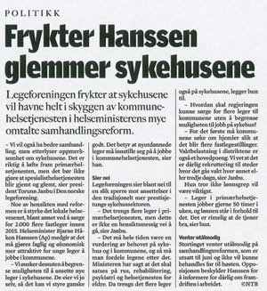 Innholdet under seksjonen Aktuelt i foreningen produseres av Legeforeningen som informasjon til medlemmene. Artiklene publiseres i Tidsskriftet på papir og nett, og Tidsskriftets sjefredaktør har redaktøransvar for innholdet.