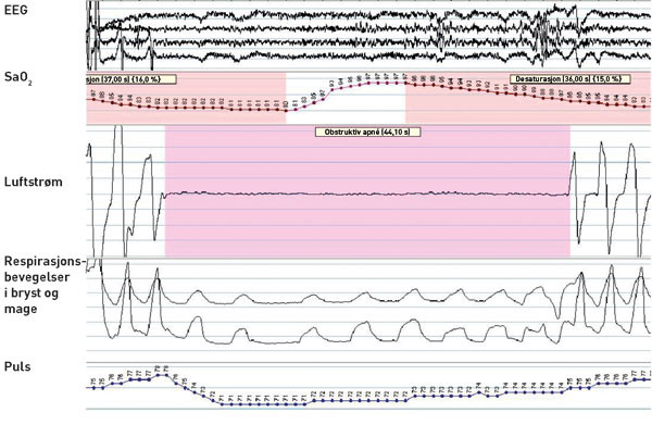 Ved søvnundersøkelser ser man ofte en kortvarig oppvåkning etter pusteforstyrrelsene, før pusten igjen normaliseres. Noen kan således våkne mer enn 30 ganger i timen og får dermed en forstyrret søvn. Figur 1 viser søvnregistrering ved en obstruktiv apné som fører til oppvåkning. Pusteforstyrrelsene kan i uttalte tilfeller hindre at pasientene når dyp søvn eller gjøre at de får sterkt redusert REM-søvn.