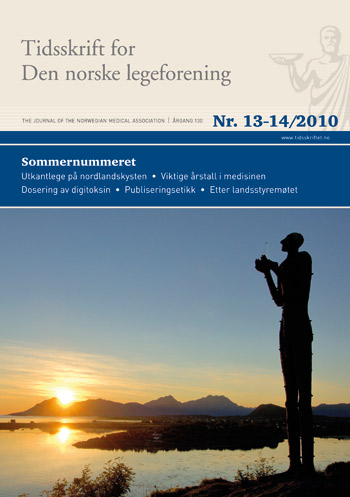 Forsidebildet Kystfolk i Nordland () sporsmal_grey_rgb Artikkel Fra Skulpturlandskap Nordland. Kjell Erik Killi Olsen: Mannen fra havet, 1994. Støpejern og krystall, 430 cm høy. © Kjell Erik Killi Olsen/BONO 2010. Foto © Øystein Søbye/NN/Samfoto Mannen fra havet skuer mot Lofotveggen. «Figuren skal stå som et fyrtårn og hylle havet (…), en takk til rikdommen som folk i uminnelige tider har hentet derfra» (1). På side 1368 kan du lese om hvordan det var å være distriktslege i Nordland på 1940-tallet . Litteratur 1.Mannen fra havet http://www.museumnord.no/dok/Mannen%20fra%20havet(low).pdf Kommentarer ( 0 ) Dette kommentarfeltet modereres, men kommentarer blir ikke redaksjonelt behandlet ut over å sikre at de følger retningslinjer for vårt kommentarfelt. Denne artikkelen ble publisert for mer enn 12 måneder siden, og vi har derfor stengt for nye kommentarer. Publisert: 1. juli 2010 Utgave 13, 1. juli 2010 Tidsskr Nor Legeforen 1. juli 2010 130 : 1313 Publisert: 1. juli 2010 Utgave 13, 1. juli 2010 Tidsskr Nor Legeforen 2010 130 : 1313 PDF Får du ikke vist PDF-filen eller vil lagre filen, kan du høyreklikke på PDF-ikonet. Velg «Lagre mål/fil som..» og hent så opp PDF-filen i for eksempel Acrobat Reader. Skriv ut Anbefalte artikler