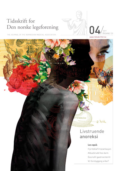 Forsidebildet Når alt handler om vekten () sporsmal_grey_rgb Artikkel Illustrasjon © Dung Hoang Ved anorexia nervosa påvirkes kroppens organer, noen ganger i en slik grad at det oppstår livstruende komplikasjoner. Det kan være utfordrende å ivareta pasientens autonomi og samtidig sørge for forsvarlig behandling. Kommentarer ( 0 ) Dette kommentarfeltet modereres, men kommentarer blir ikke redaksjonelt behandlet ut over å sikre at de følger retningslinjer for vårt kommentarfelt. Denne artikkelen ble publisert for mer enn 12 måneder siden, og vi har derfor stengt for nye kommentarer. Publisert: 18. februar 2011 Utgave 4, 18. februar 2011 Tidsskr Nor Legeforen 18. februar 2011 131 : 321 Publisert: 18. februar 2011 Utgave 4, 18. februar 2011 Tidsskr Nor Legeforen 2011 131 : 321 PDF Får du ikke vist PDF-filen eller vil lagre filen, kan du høyreklikke på PDF-ikonet. Velg «Lagre mål/fil som..» og hent så opp PDF-filen i for eksempel Acrobat Reader. Skriv ut Anbefalte artikler
