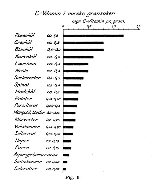 Tidligere i Tidsskriftet Ikke for lite, ikke for mye Marit Fjellhaug Nylund Om forfatteren Se alle artikler Marit Nylund Email: marit.nylund@legeforeningen.no Tidsskriftet () sporsmal_grey_rgb Artikkel Det er sol og sommer. Men får befolkningen nok vitaminer gjennom naturlige vitaminkilder? Dette spørsmålet har vært stilt mange ganger gjennom tidene, også i Tidsskriftet nr. 18/1938. I en artikkel (Tidsskr Nor Lægeforen 1938; 58: 1062 – 84) gjennomgås vitamin for vitamin med dets kilder og mengdeangivelser, mye testet ved dyreforsøk. Vitamininnholdet i friske og hermetiske næringsmidler. Vitamininnholdet i friske og hermetiske næringsmidler. Av Gulbrand Lunde, Stavanger. Kommentarer ( 0 ) Dette kommentarfeltet modereres, men kommentarer blir ikke redaksjonelt behandlet ut over å sikre at de følger retningslinjer for vårt kommentarfelt. Denne artikkelen ble publisert for mer enn 12 måneder siden, og vi har derfor stengt for nye kommentarer. Publisert: 17. juni 2011 Utgave 12, 17. juni 2011 Tidsskr Nor Legeforen 17. juni 2011 doi: 10.4045/tidsskr.11.0582 PlumX 131 : 1210 Publisert: 17. juni 2011 Utgave 12, 17. juni 2011 Tidsskr Nor Legeforen 2011 131 : 1210 doi: 10.4045/tidsskr.11.0582 Plum Print visual indicator of research metrics PlumX Metrics PDF Får du ikke vist PDF-filen eller vil lagre filen, kan du høyreklikke på PDF-ikonet. Velg «Lagre mål/fil som..» og hent så opp PDF-filen i for eksempel Acrobat Reader. Skriv ut Anbefalte artikler