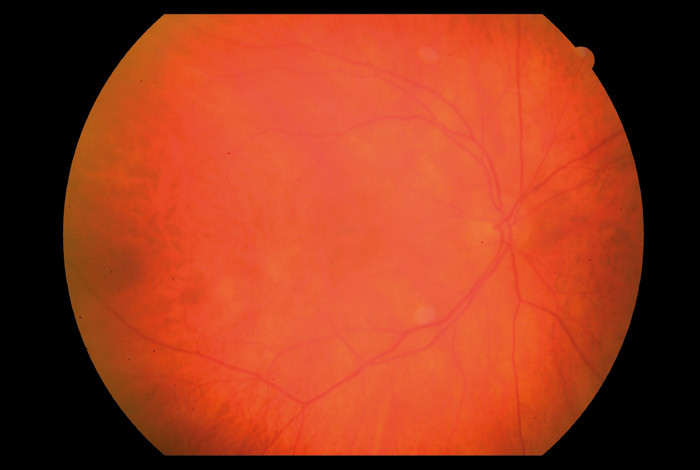 En 87 år gammel kvinne med kjent bilateral carotisstenose, hypertensjon og hjertesvikt hadde i flere uker smerter over begge tinninger, spesielt mens hun spiste. Utover dette hadde hun ikke hodepine. Hun ble henvist øyeavdeling med mistanke om netthinneløsning etter at hun akutt mistet synet på venstre øye. Undersøkelse viste papillødem, peripapillær blødning og iskemisk preg langs arkadene nedenfor macula på venstre side (forenlig med mulig temporalisarteritt) (bildet til venstre) (piler) og velavgrenset papill på høyre side (bilde kun i Tidsskriftets nettutgave).