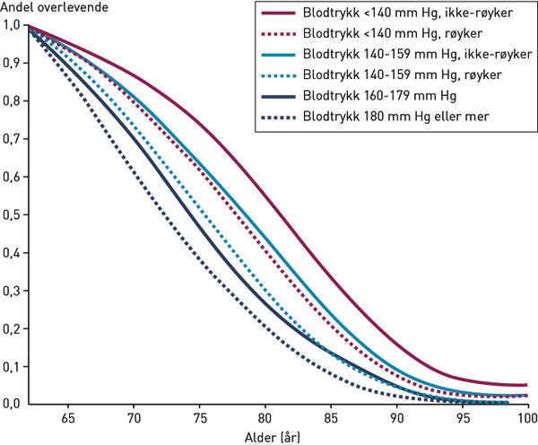 Basert på data fra nasjonale og internasjonale befolkningsundersøkelser er ulike risikomodeller for hjerte- og karsykdom utviklet. Blodtrykk og sigarettrøyking er med i alle disse. SCORE-modellen (14) inngår i de europeiske retningslinjene for forebygging av hjerte- og karsykdom, mens den tilsvarende NORRISK-modellen er del av de norske (15). Vi vil relatere våre funn til de nevnte norske undersøkelsene og risikomodellen NORRISK.